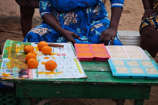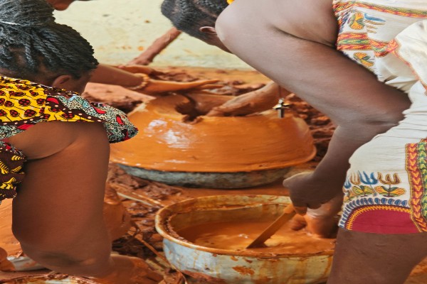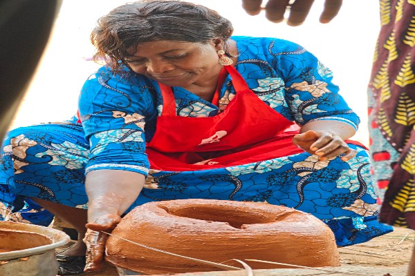Dans ce cadre, l’association CLEF, déjà venue en mission de repérage pour les besoins des femmes de Kpessi au mois de Novembre 2025, s’est à nouveau mobilisée pour y répondre concrètement. Cette fois-ci, nous avons apporté aux femmes de la commune des sacs d’argile ainsi que les matières premières nécessaires à la fabrication de savon. Ces appuis matériels constituent une étape essentielle pour permettre aux bénéficiaires de développer des activités génératrices de revenus durables et adaptées à leur environnement. Une journée particulière a été consacrée à une formation pratique, à laquelle nous avons assisté en direct. Cette session a permis aux femmes d’apprendre la fabrication de foyers de cuisson améliorés à partir de matériaux simples et renouvelables tels que l’argile, l’eau, les feuilles de palmier séchées et la cendre. Ces foyers, plus économiques et écologiques, contribuent à la réduction de la consommation de charbon de bois et à l’amélioration des conditions de cuisson au sein des ménages.