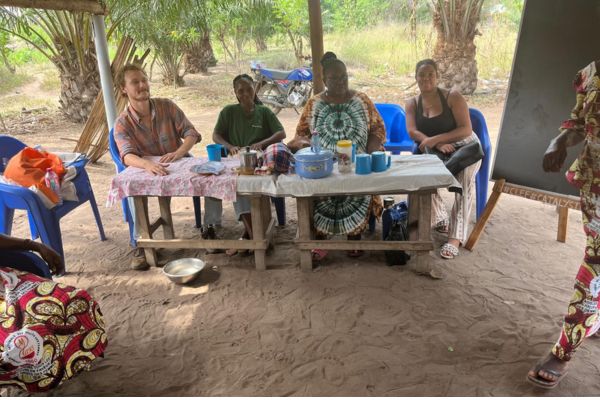 Entre agriculture, projets d’avenir et réalités du terrain Malgré ces contraintes, la communauté garde l’envie d’avancer. Avec l’appui de CLEF, plusieurs pistes ont été évoquées pour diversifier les sources de revenus : couture, fabrication de fourneaux, transformation de l’huile de palme. Ces activités sont encore à l’état de propositions, mais pourraient offrir une alternative au travail champêtre, à condition de disposer d’équipements adaptés, notamment d’une machine pour décortiquer les noix. Un tableau a été offert pour soutenir le projet d’alphabétisation, première étape vers plus d’autonomie, et un compte bancaire collectif a été ouvert afin d’éviter de conserver trop de fonds sur place. Le chef du village produit également du sodabi, contribuant à l’économie locale. Les femmes vendent leurs produits au marché de Bodjé, situé à environ cinq kilomètres, qu’elles rejoignent à pied ou parfois en zem. Un projet de marché local, porté par le chef du village, prévoit un espace d’approximativement trois hectares. Ce futur marché pourrait profiter aux villages environnants et faciliter l’écoulement des produits, mais faute de moyens financiers, il reste pour l’instant en attente. Une proposition de location de chaises à moitié prix pour générer des revenus a également été faite, mais n’a pas encore été mise en œuvre, illustrant le besoin d’accompagnement pour transformer les idées en actions concrètes.